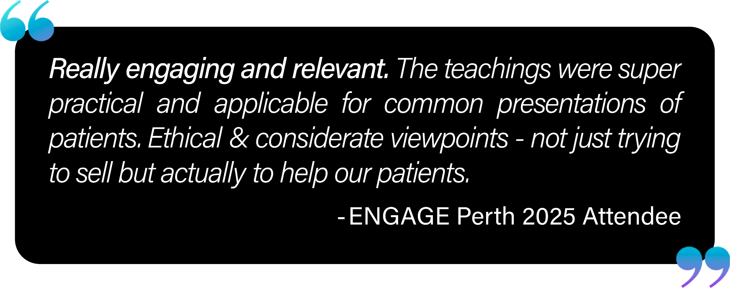 - A clear and strong focus on treatment plan optimisation, theories and techniques to improve outcomes and predictability.